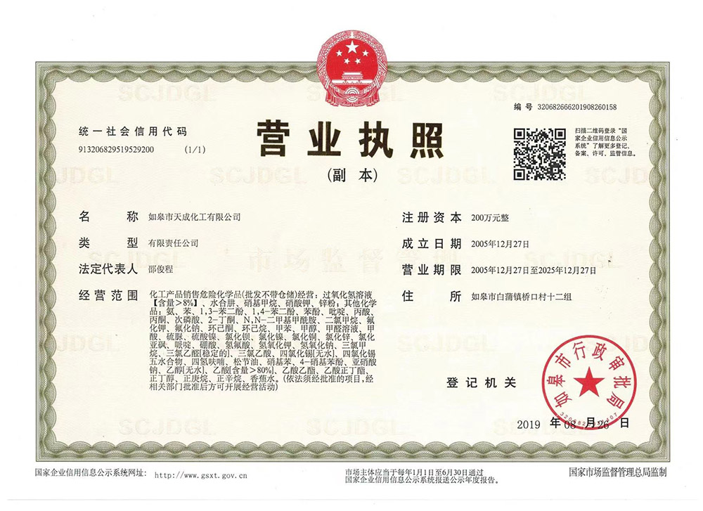 如皋市天成化工專業(yè)為您服務: